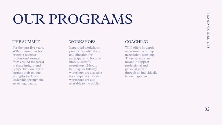 The result was a single source of truth that helped WIN stay cohesive across campaigns and event materials, improved speed and consistency in production, and supported a more elevated brand presence across digital and in-person experiences.
